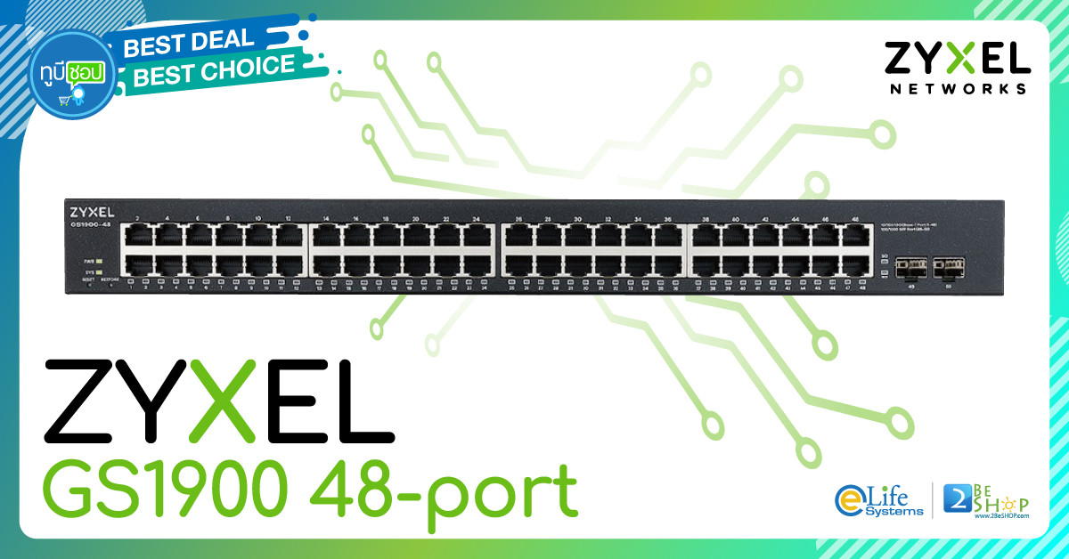 ZYXEL GS1900 48-port GbE Smart Managed Switch with GbE Uplink48 x GbE RJ-45 ports, 2 x GbE SFP slots